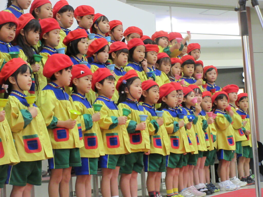 4歳、5歳の子どもたちが、合唱とハンドベルを披露しました。