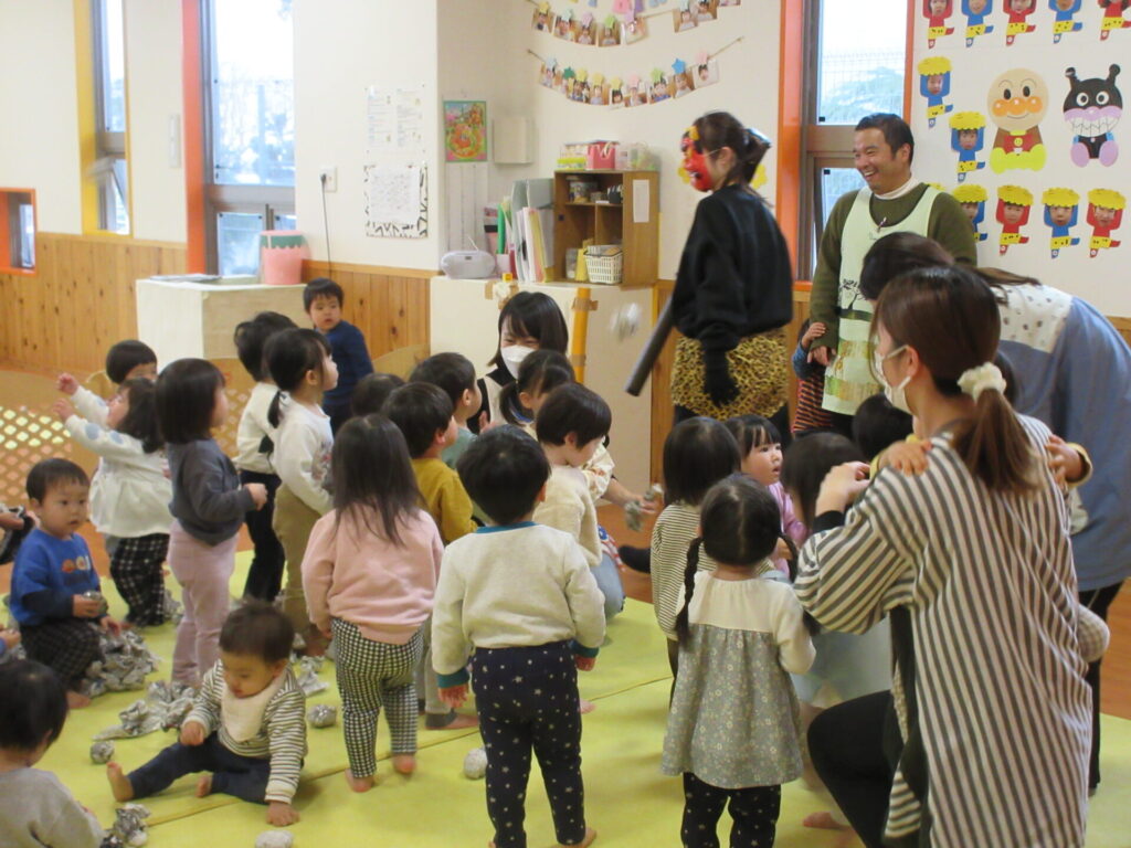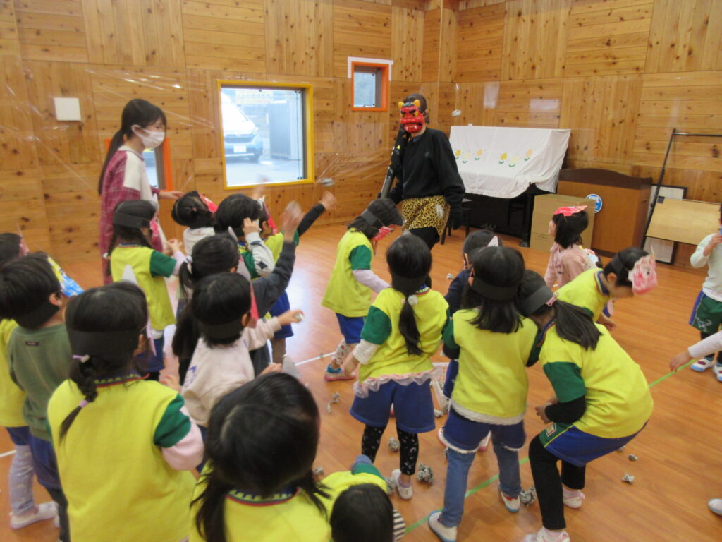 鬼も登場し、怖がる子や勇敢に豆を投げる子と様々な姿が見られました。