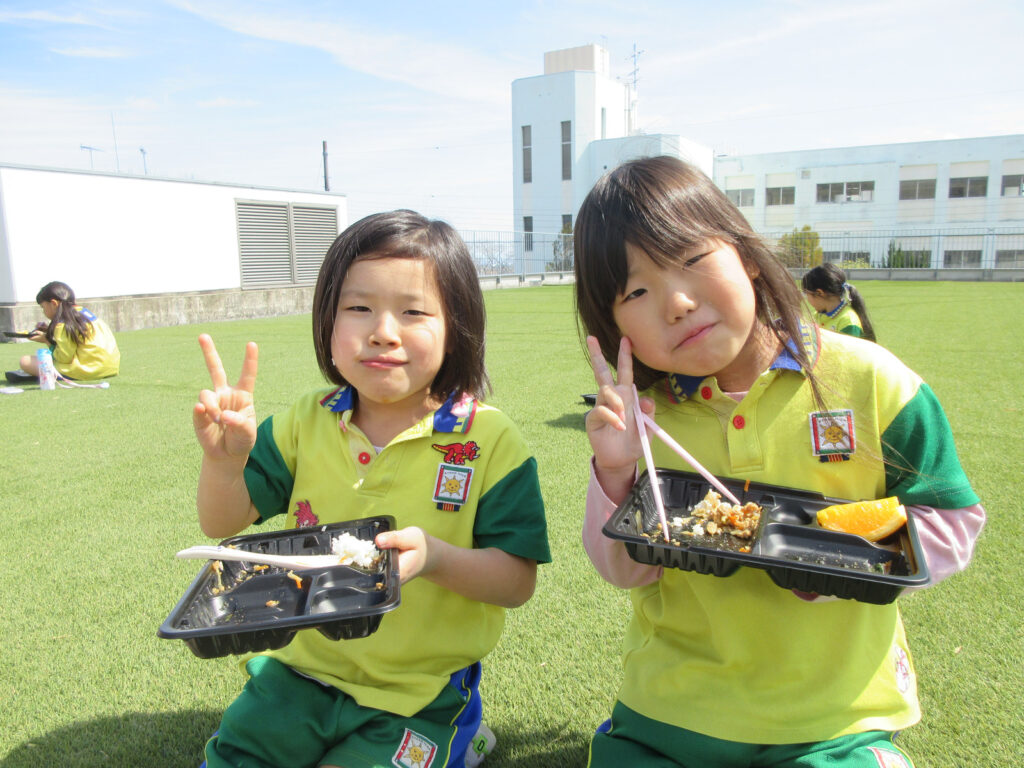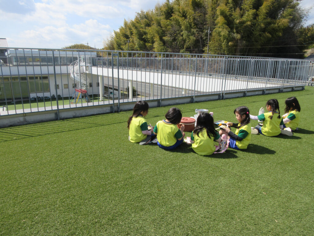 空の下で、みんなで食べるお給食はまたまた格別です。